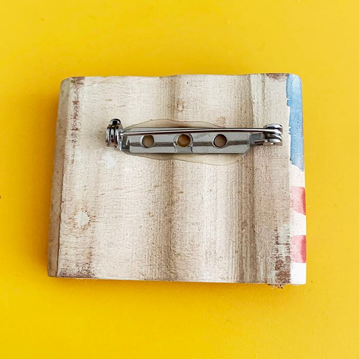 40x50x9mm 木製 アメリカンカントリー調の木製ブローチ。軽量で厚みあり、表情のあるタッチ。バッチとの重ね着けも楽しめそう◎