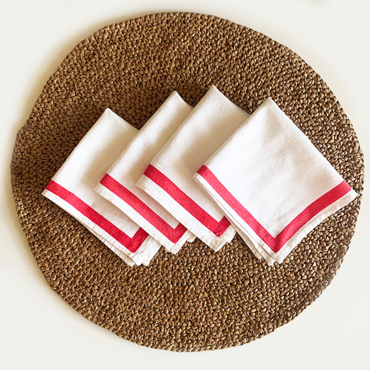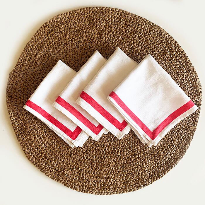 かつては海外のアンティークショウに行くと、大量に束ねられたこの手のクロスを見かけた。業務用なのか、なんとも言えないサイズ感。ファブリック好きならシビれる風合いの4枚セット。古い物なのでVintage好きの方におすすめ。